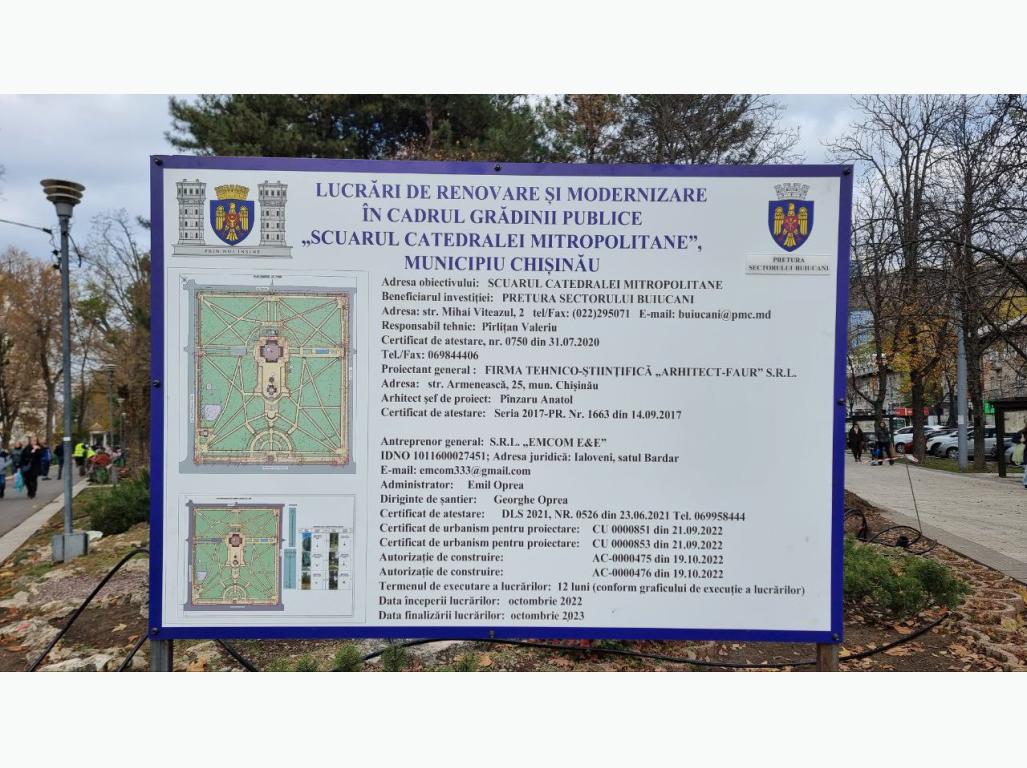 Proiectul de reabilitare a Grădinii Publice Scuarul Catedralei Mitropolitane „Nașterea Domnului” este la prima etapă și include: