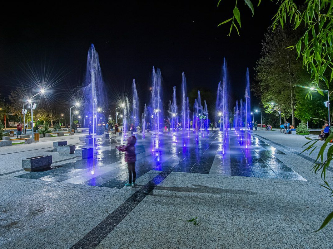 Havuzul, amplasat la intrarea în parc, oferă un spectacol cu 40 de jeturi și 40 de lumini LED cu proiectare subacvatică.