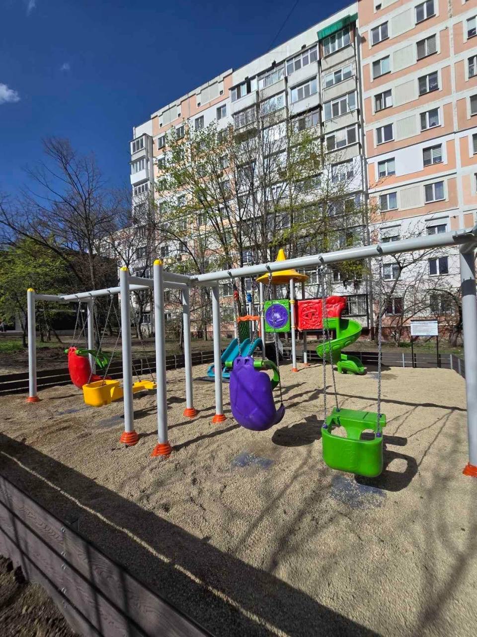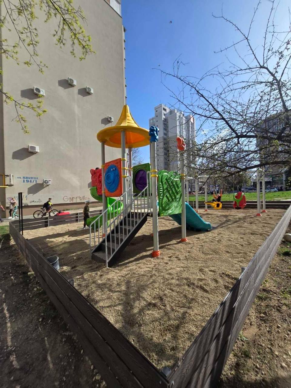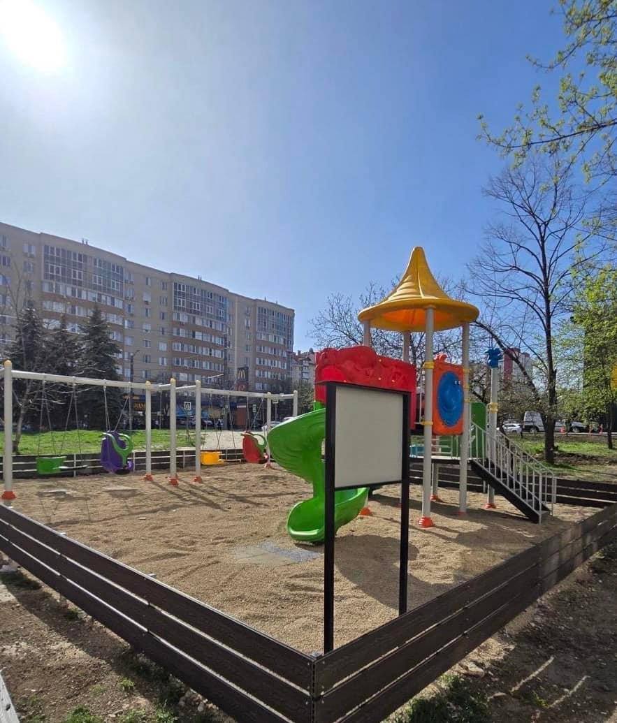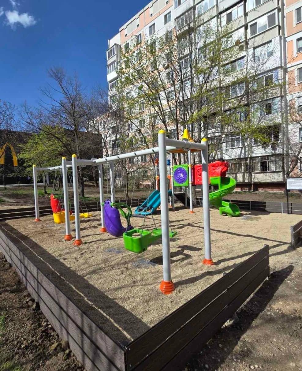 Un teren de joacă nou și sigur cu tobogane și leagăne a fost amenajat pe strada Alba Iulia, 194/1 – 194/2.