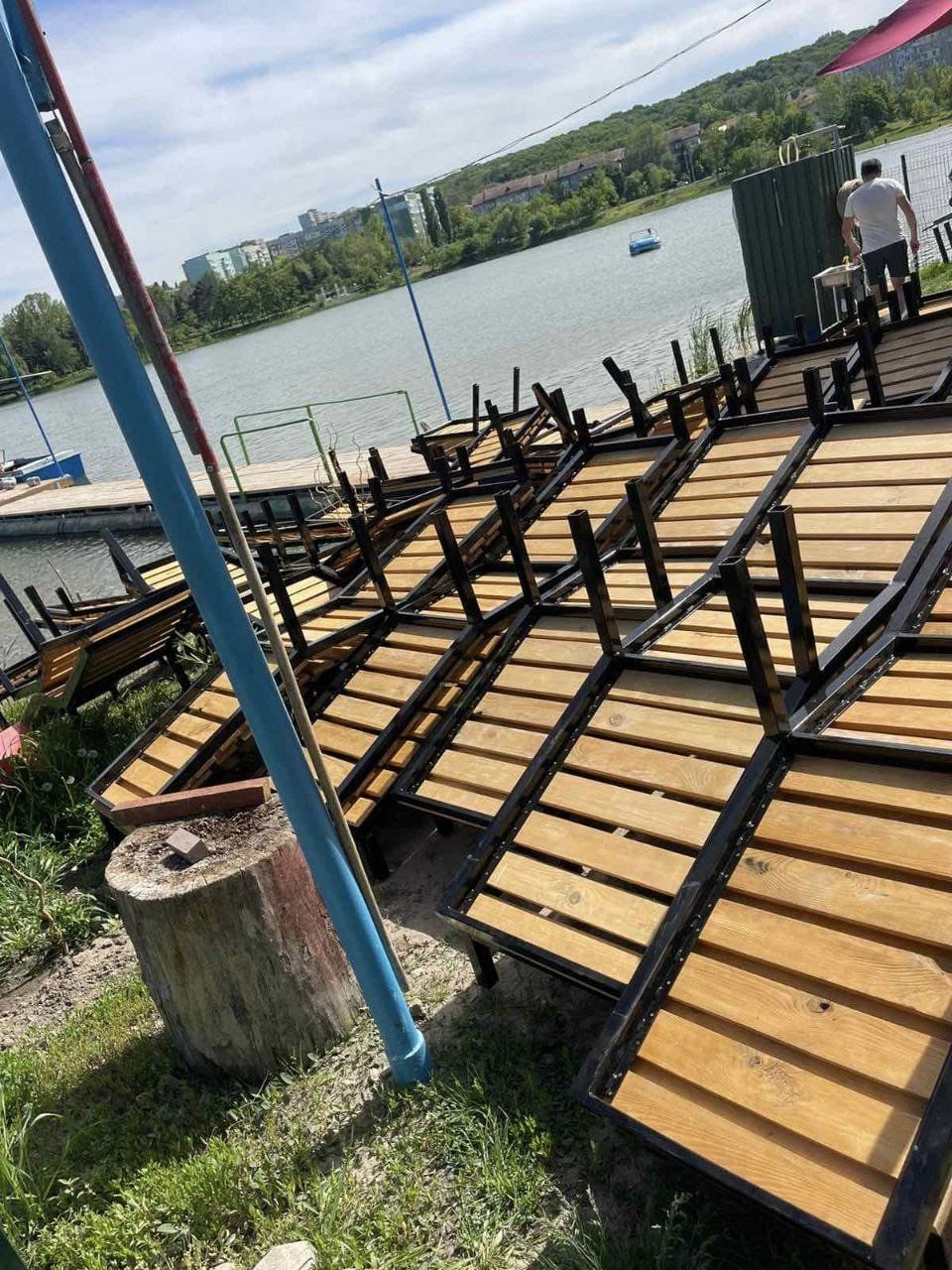 Primăria Chișinău instalează noi șezlonguri pentru confortul cetăţenilor pe malul lacurilor.