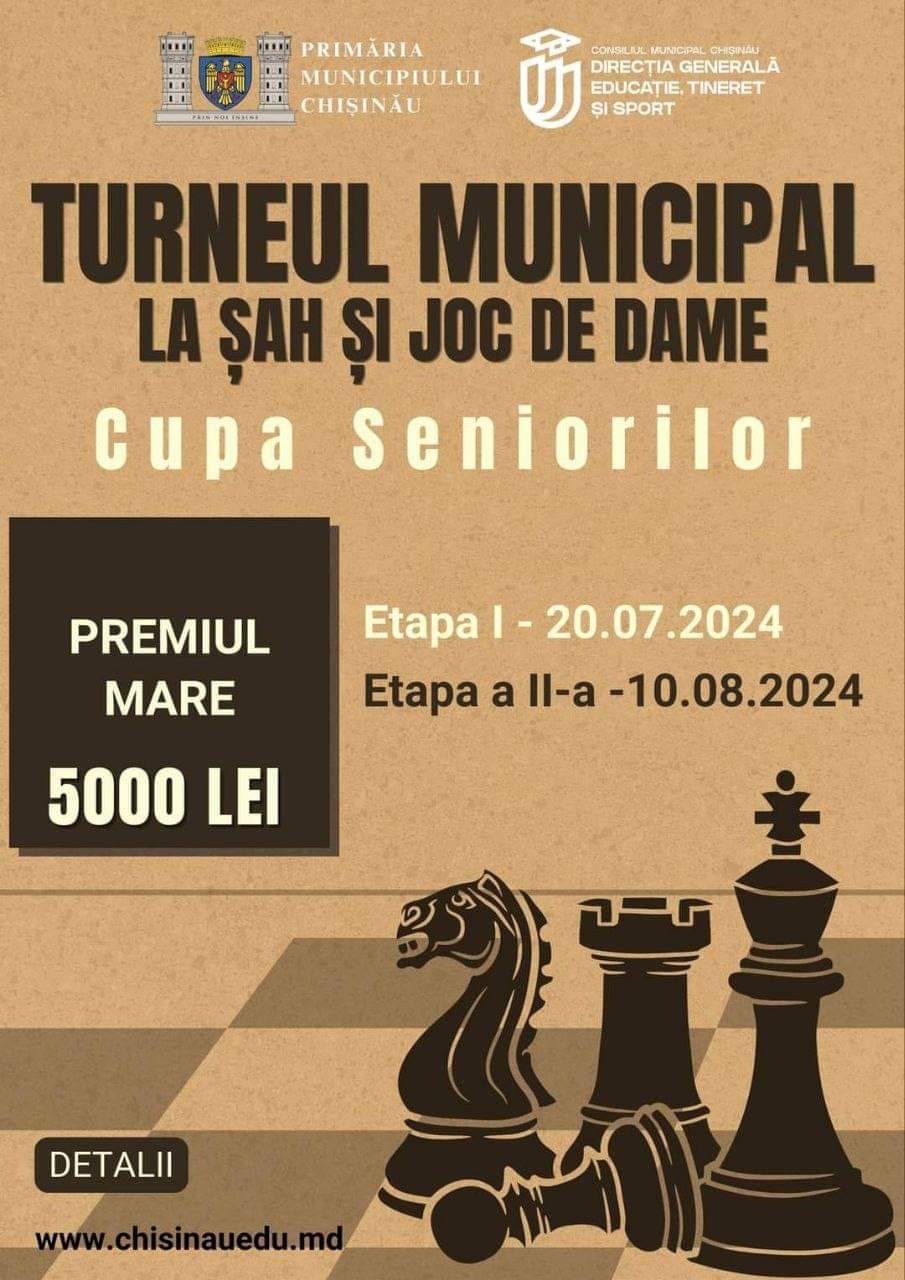 ✅ Pretura sectorului Buiucani anunță lansarea celei de-a 2-a ediții a Turneului Municipal de Șah și Joc de Dame „Cupa Seniorilor”, inițiat de Primăria Municipiului Chișinău.