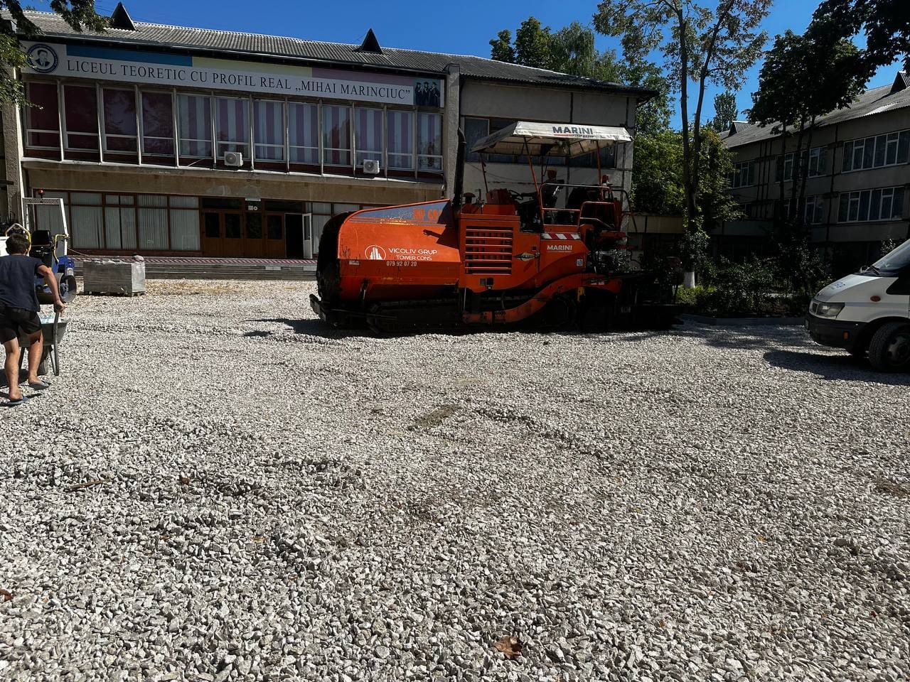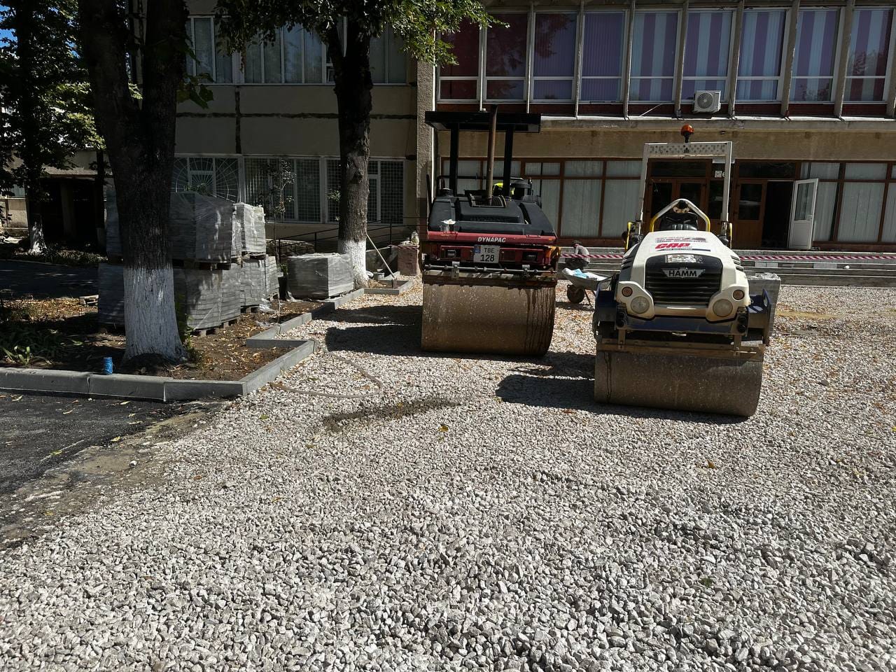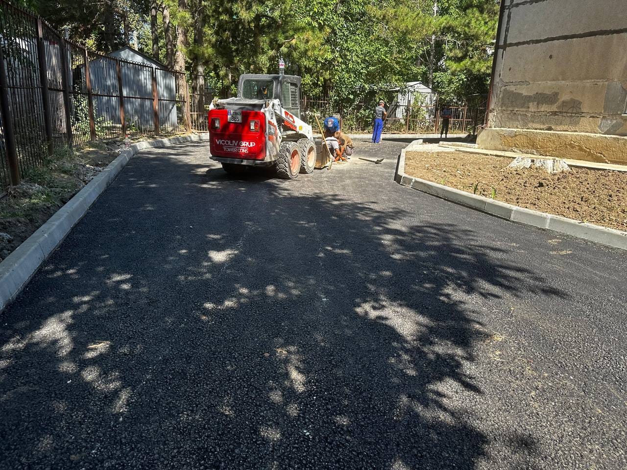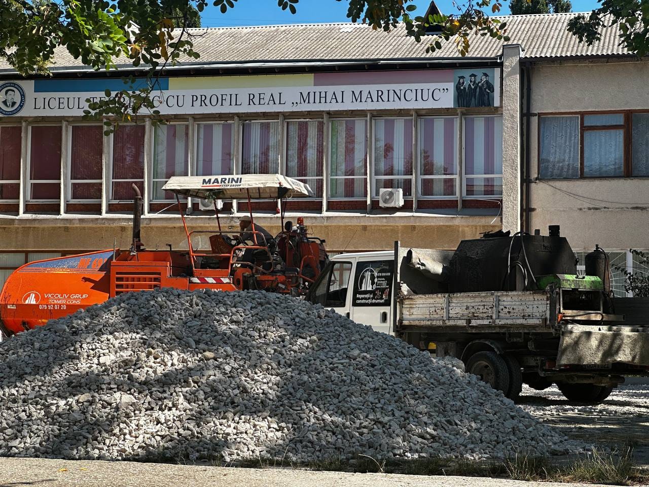 Aici au fost schimbate toate bordurile și s-a așternut primul strat de asfalt pe aleea de acces către liceu, cât și din jurul clădirii.