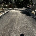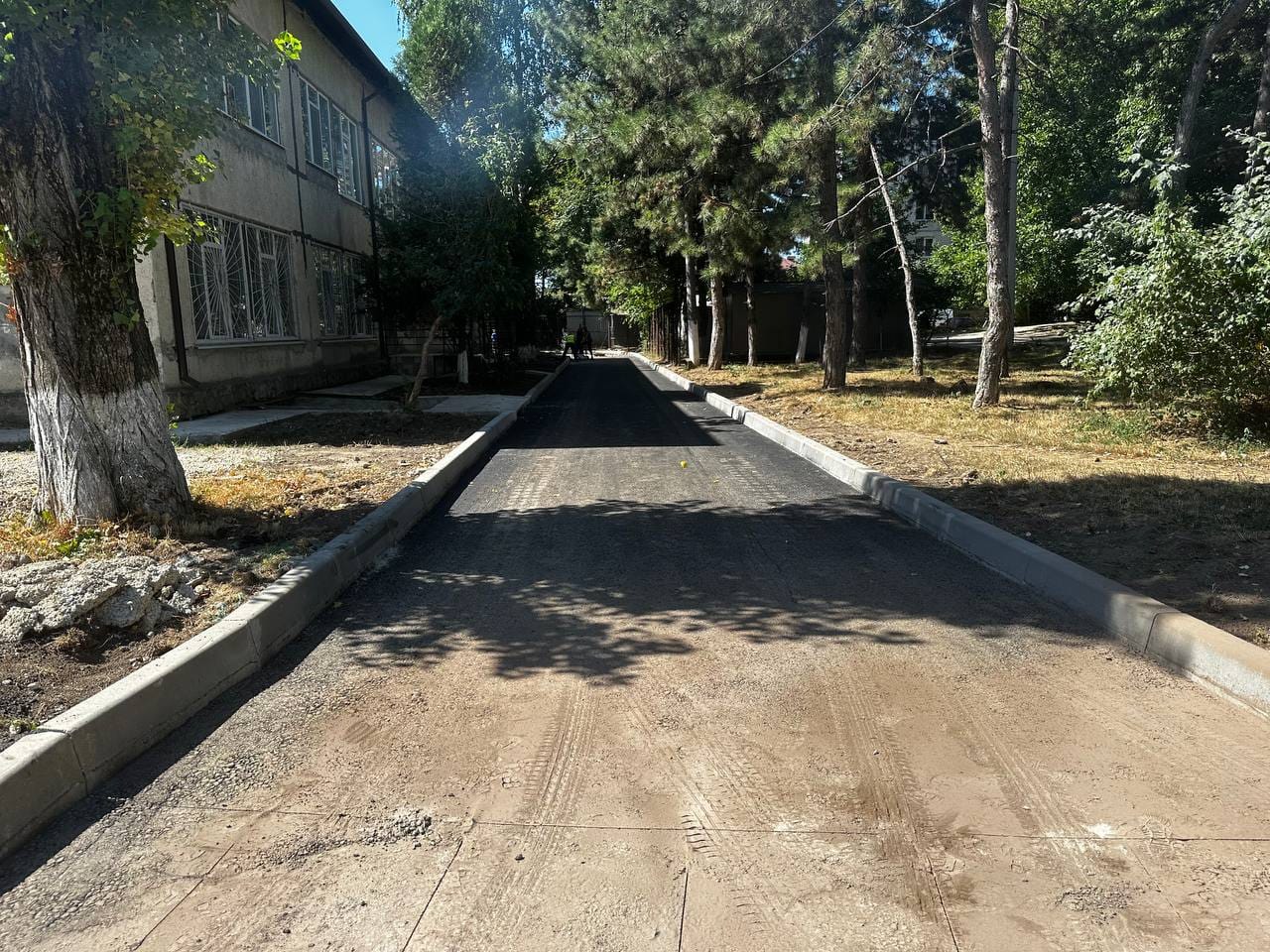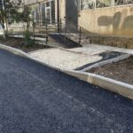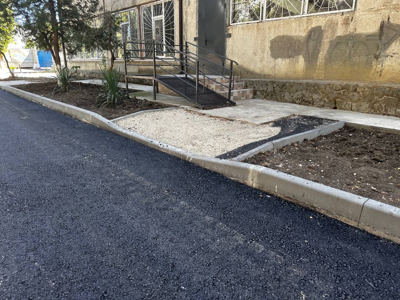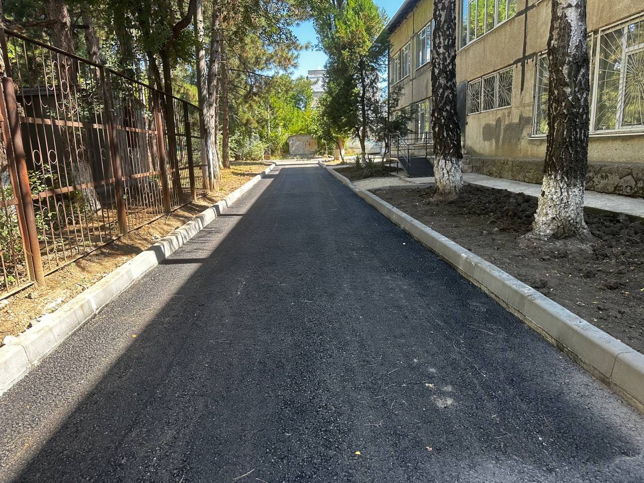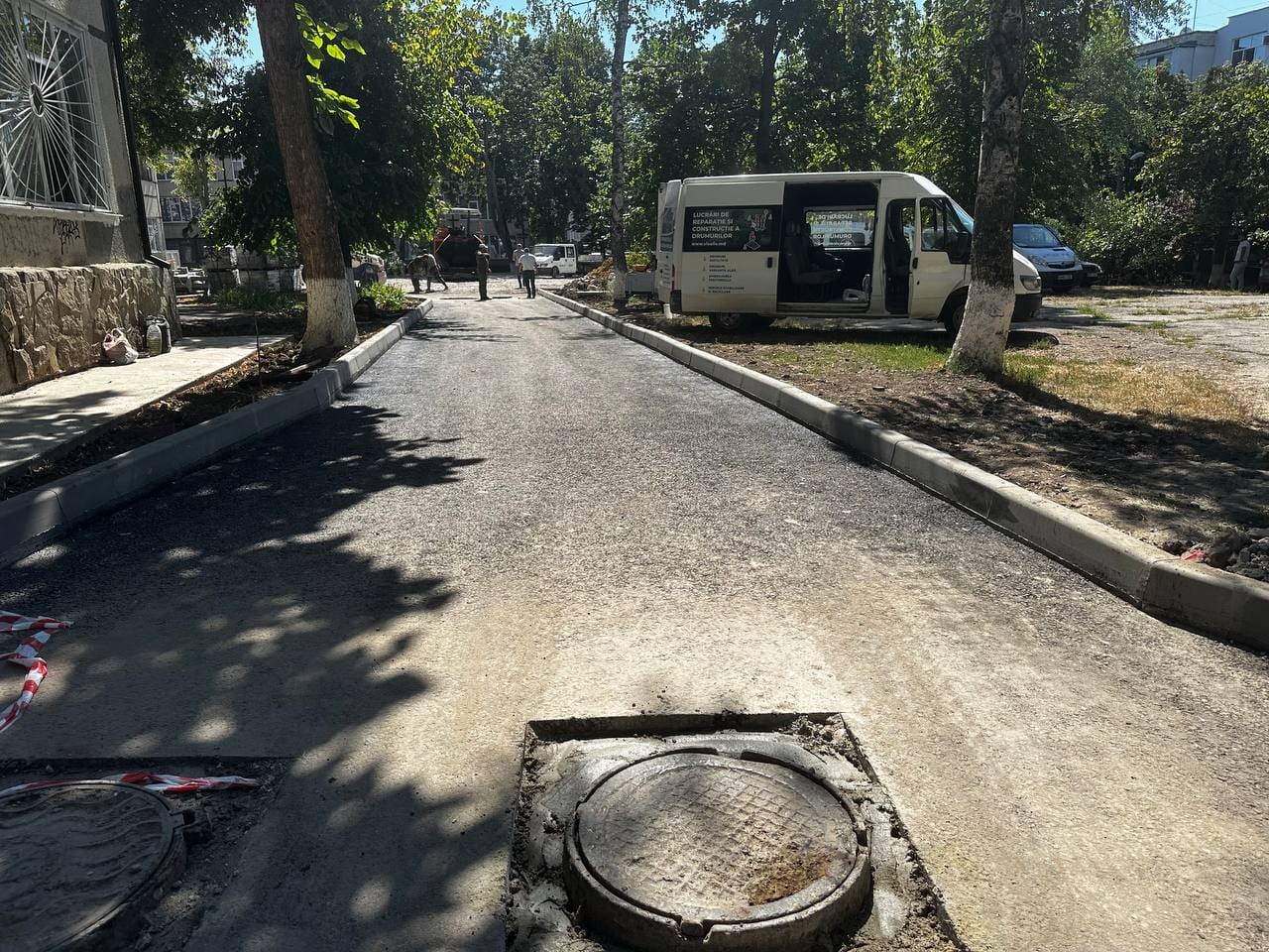 Aici au fost schimbate toate bordurile și s-a așternut primul strat de asfalt pe aleea de acces către liceu, cât și din jurul clădirii.