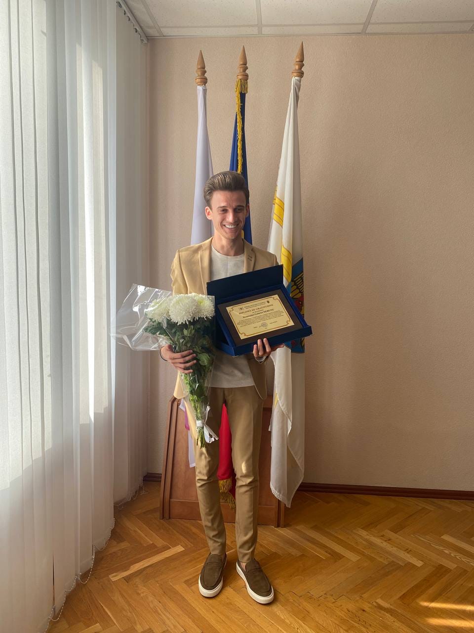 Pretorul sectorului Buiucani, Vasile Moroi a oferit artistului o diplomă de recunoștință și a subliniat importanța păstrării și promovării valorilor culturale autentice de către tânără generație.