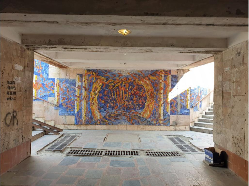 Totodată a fost restabilită mozaica de pe pereţii subteranei, în măsura posibilităţilor. Pentru a se menţine, pe aceasta a fost aplicată sticlă securizată.