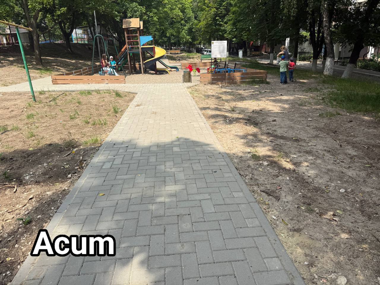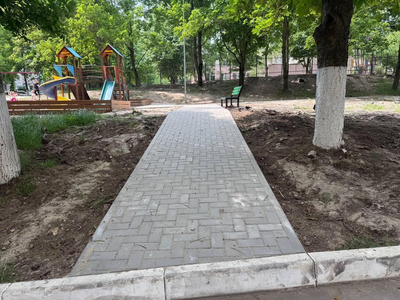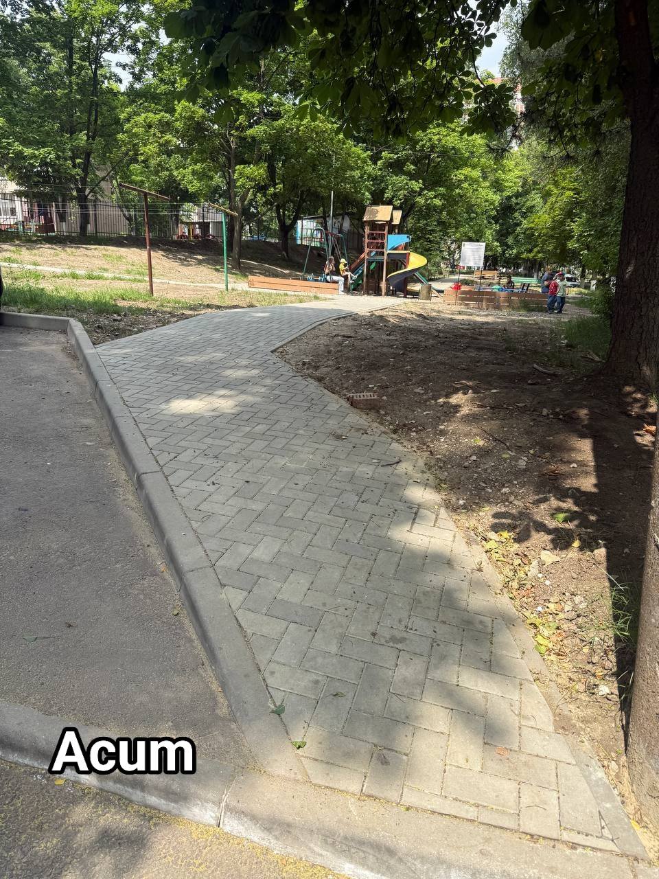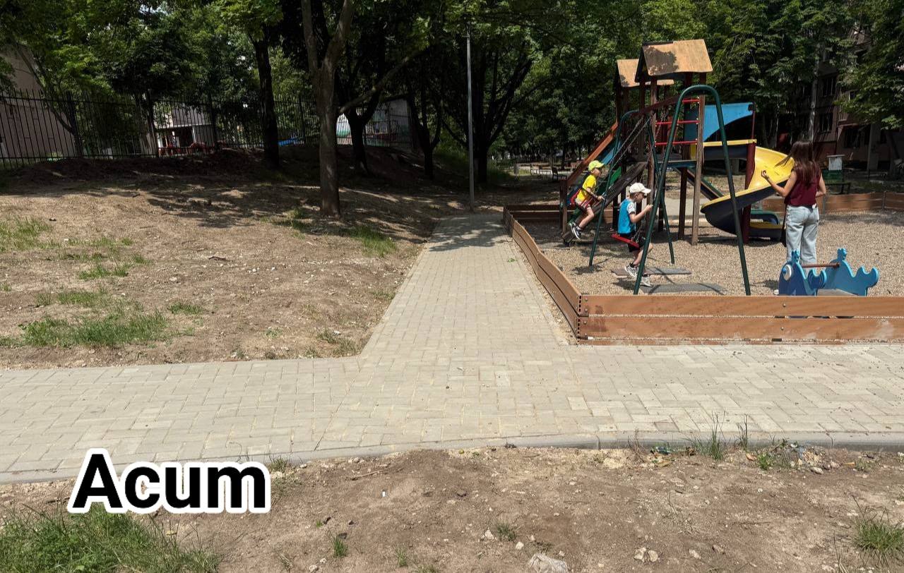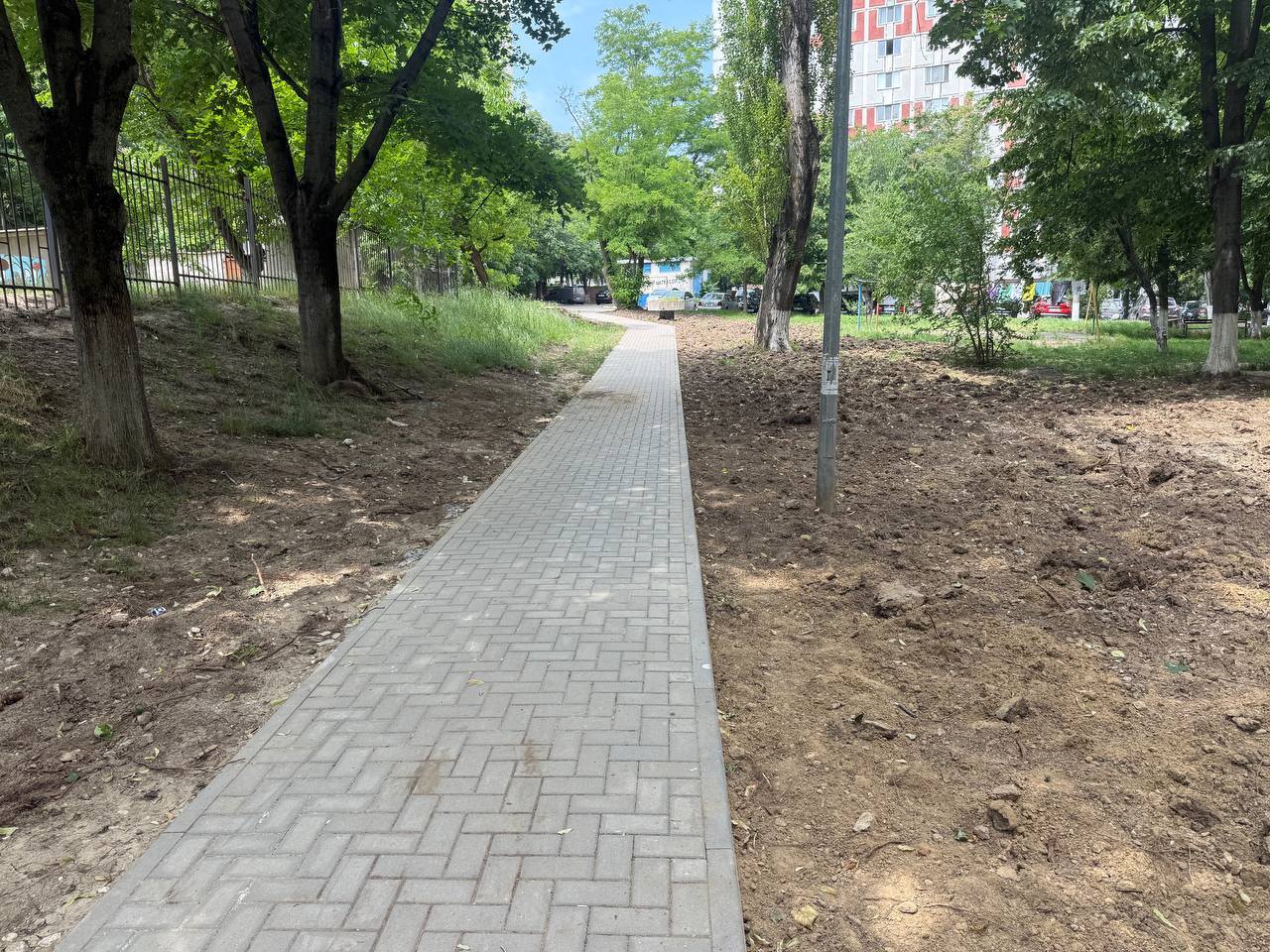 Pretura sectorului Buiucani anunță finalizarea lucrărilor de amenajare a acceselor și trotuarelor către Grădinița nr. 158, de la str. Nicolae H. Costin 59/2, precum și către terenul de joacă din curtea comună.