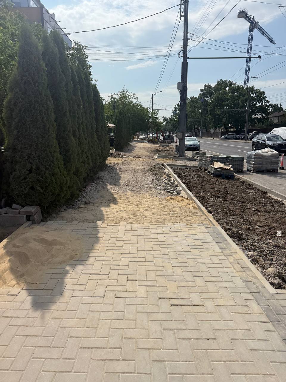Menționăm că o porțiune considerabilă din trotuar a fost deja pavată, iar lucrările avansează într-un ritm susținut. Cu eforturi concertate și o organizare eficientă, continuăm să respectăm termenele stabilite și să asigurăm calitatea execuției în toate etapele proiectului.