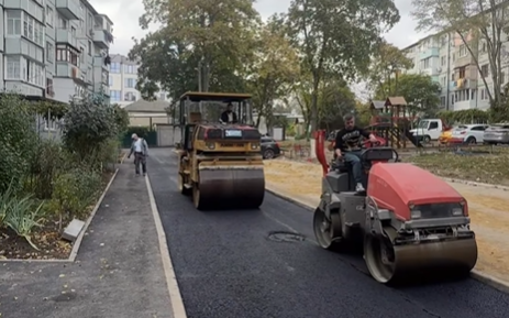Așternerea stratului de egalizare în curtea blocului locativ din strada Paris, 40