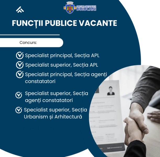 📌 Pretura sectorului Buiucani anunță concurs pentru ocuparea următoarelor funcții publice vacante: