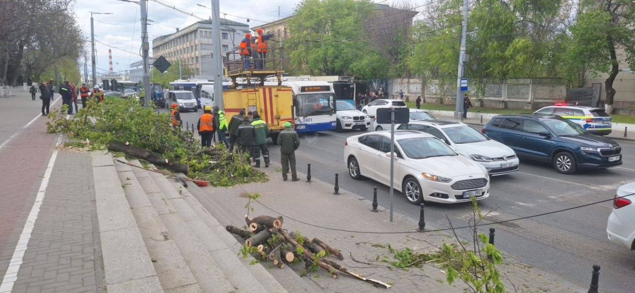 Toate serviciile municipale și desconcentrate au intervenit operativ în teren în urma incidentului produs pe bd. Ștefan cel Mare și Sfânt, unde, din cauza vântului puternic, o creangă s-a prăbușit pe partea carosabilă.